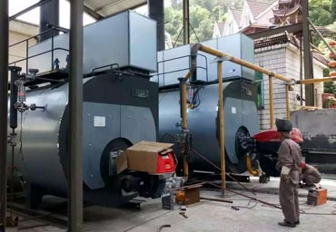 項目簡介:石家莊鴻泰橡膠有限公司兩臺10噸燃氣熱水鍋爐安裝調度現場